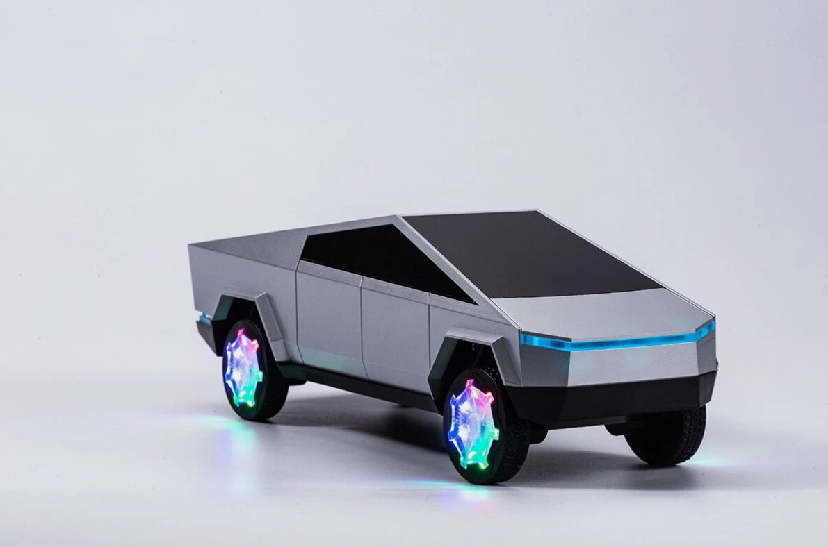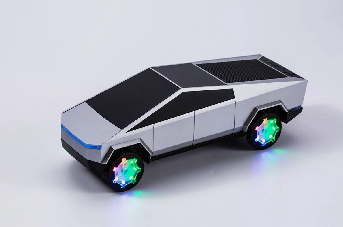 Tesla Cybertruck Tasarımlı LED Işıklı Bluetooth Hoparlör | USB, AUX, FM Destekli